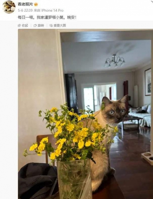 在微博上,人们发现,她还养了一只猫,有时候也跟大家分享猫咪的日常。这个账号上,她一共发了14943条微博。