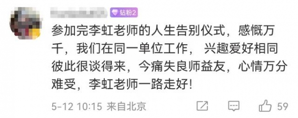 @萧秋水:"在微博上,仍有很多人在持续的去做有意义的分享。这种对生活的热情和负责态度,也会激励到更多人。并不是所有人都流量至上,不是所有人都罔顾道德底线,总有丹心照汗青。可敬的李虹女士,走好!"