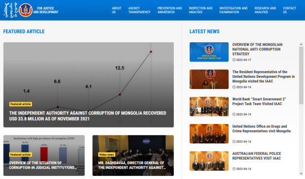 蒙古反腐败搜查局(IAAC)官方网站截图