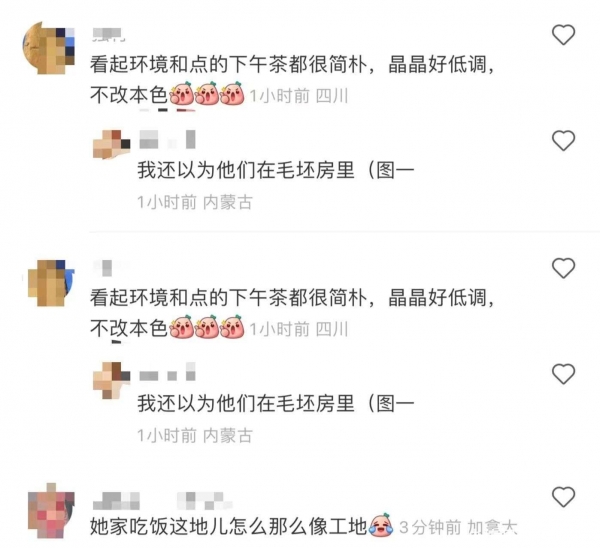 从镜头中可以看出,郭晶晶一家是在甜品店喝下午茶,只不过这家甜品店装修简约,好似毛坯房。