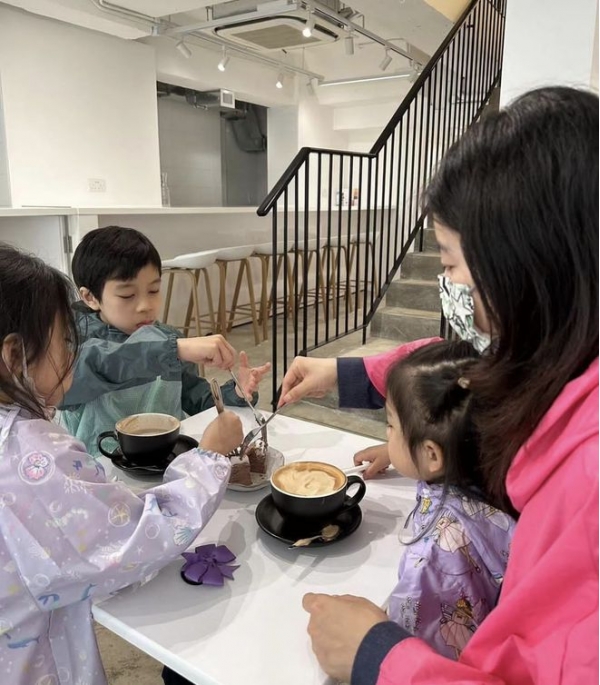 值得一提的是,四个人只点了两块小蛋糕和两杯咖啡,真是勤俭节约,不知霍启刚是另开一桌呢,还是在一旁看着老婆孩子们享用。