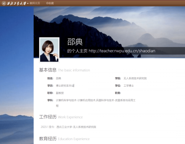 西北工业大学官网邵典副教授的教师个人主页