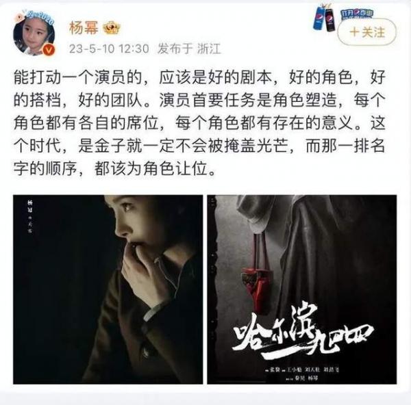 《哈尔滨1944》是杨幂与嘉行传媒解约后第一部官宣的作品,自然是备受外界关注。