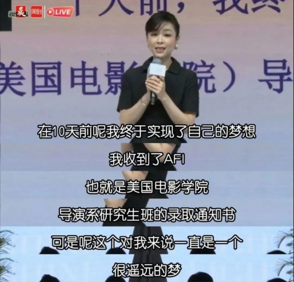 今年上半年,张静初在自己的社交账号宣布了三件大事。首先是拿到美国电影学院导演系的录取通知书。未来两年,她会以42岁高龄研究生的身份去继续深造。