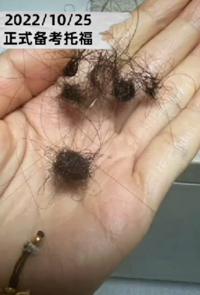 基础不好的张静初,第一次考砸了后,就规定自己每天睡前必须背下200个单词。为此,她也是焦虑的大把大把掉头发。
