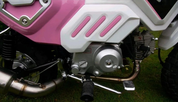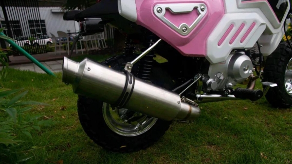 其中最为抢眼的是它的排气管。原版小猴子采用的是高位排气,而这款车却融入了仿赛的尾段排气,这种设计虽然新颖,但难免有点夸张,先不管它的"声浪"如何,反正看着就有点怪异,但奇怪的是它并没有影响整车协调性,反而结合车身设计来看也有一定的点缀作用。