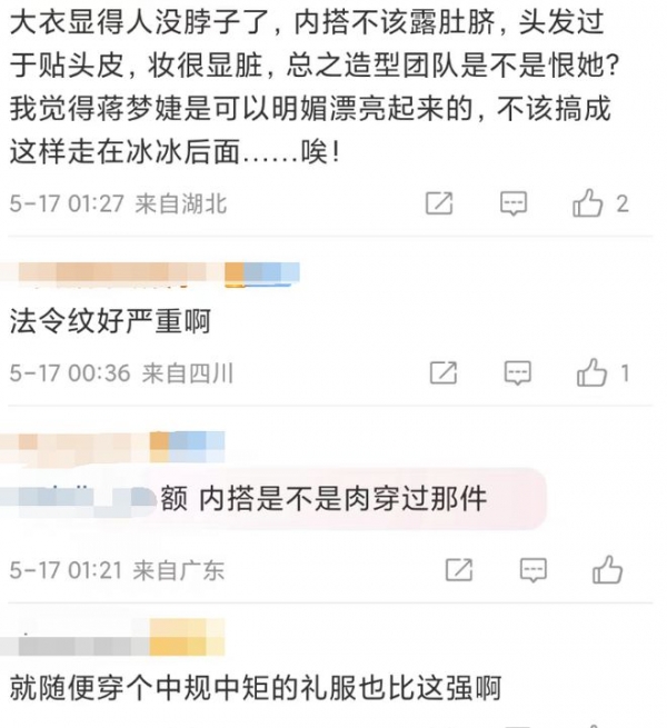 首先亮相红毯的内娱艺人是蒋梦婕,她穿着宽大的白色风衣搭配黑色礼裙。不过,网友们对于她的这个造型表示不太满意,没有衬托出身材,甚至有点臃肿。