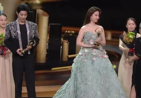 在流行直角肩的时候,刘亦菲一组颁奖典礼的照片,被吐槽膀大腰圆,块头大。