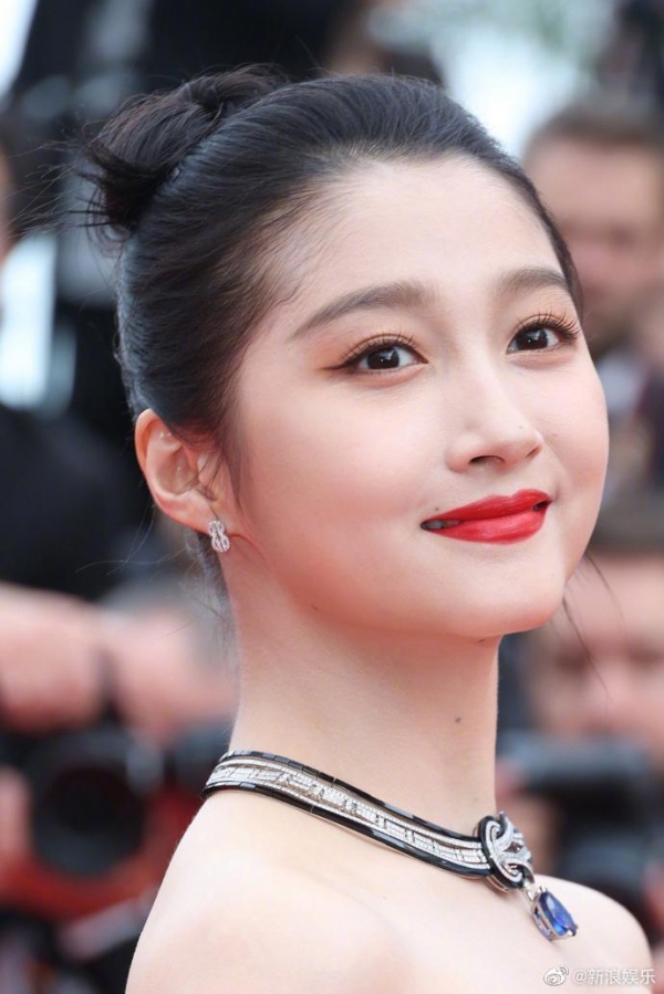 关晓彤一袭黑色闪钻礼服亮相戛纳红毯!雪肤玉貌性感撩人