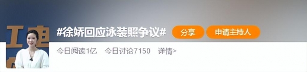 16日,徐娇参加活动回应泳装照争议:我很喜欢我的身体,那就大大方方展现给大家看。
