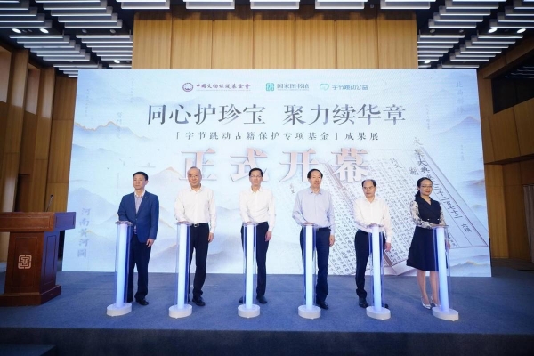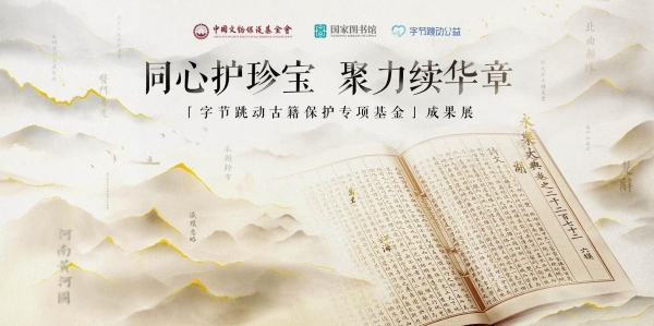 2023年5月16日,由中国文物保护基金会携手国家图书馆(国家古籍保护中心、国家典籍博物馆)、字节跳动公益,三方联合主办的"同心护珍宝 聚力续华章--'字节跳动古籍保护专项基金'成果展"开幕式在国家图书馆文会堂隆重举行。历时近2年,字节跳动古籍保护专项基金资助的104册件古籍已全部完成修复。这次遴选了其中的39件古籍展出,包括《永乐大典》"湖"字册、《瀛環志略》、《楚辞》以及系列金石拓片、黄河舆图、样式雷图档等。