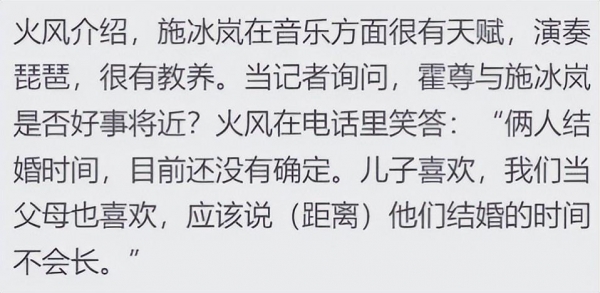 对于这一消息,此前刚刚才得知霍尊和施冰岚恋爱两年多的网友们再次炸锅了,这个消息再度引发热烈讨论。这也让霍尊本人不得不出来辟谣否认,他表示爸妈关心自己催婚是正常的,不过还没到结婚的时候,这也得看女方同不同意,还表示有想要拉黑火风的冲动。