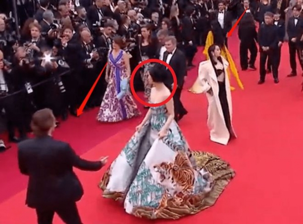 这一次范冰冰穿着中国风礼裙,上面带着刺绣老虎,果然是一如既往的霸气,穿着打扮也是足够用心的,网友们都点赞范冰冰真的是没有让人失望。但是范冰冰出场的时候,太多人一起出场,范冰冰几乎也是没有什么存在感,没有镜头。