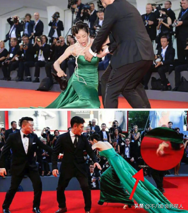 还有穿着暴露在红毯上摔倒的,差点就"春光乍泄"了,不打马赛克都发不出来。