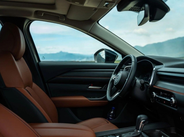 至于设计风格,马自达CX-50个人认为是更接近于品质/耐看型,仪表盘是半"传统"式设计--仪表盘中增加了一个内嵌屏幕,速度表中间和两侧都可以切换不同信息类型。
