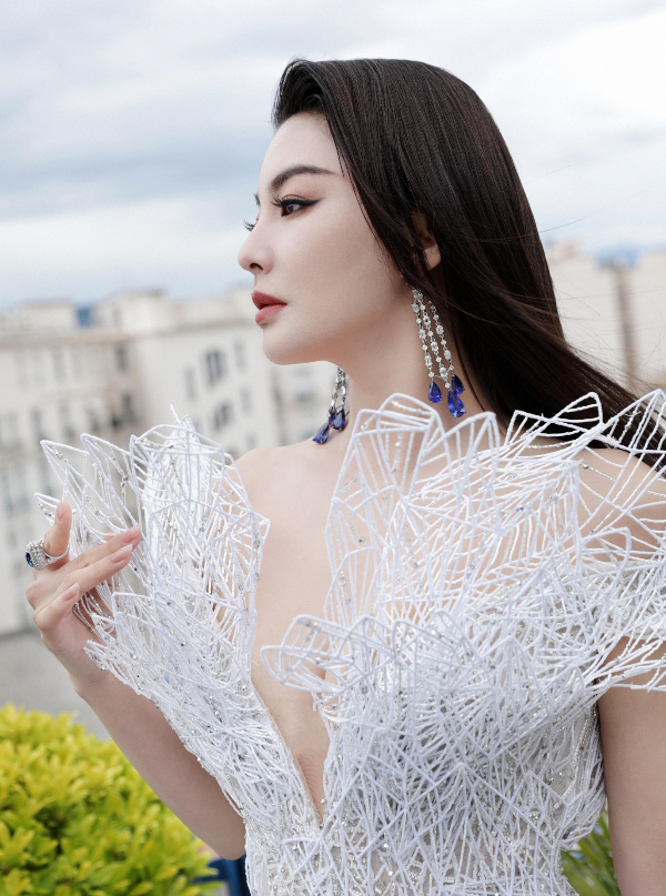 白裙的材质并不是用普通面料,所以亮相红毯就登上热搜成为热议的焦点,关键是肤白貌美的她还佩戴了蓝宝石首饰,尽显优雅与贵气!