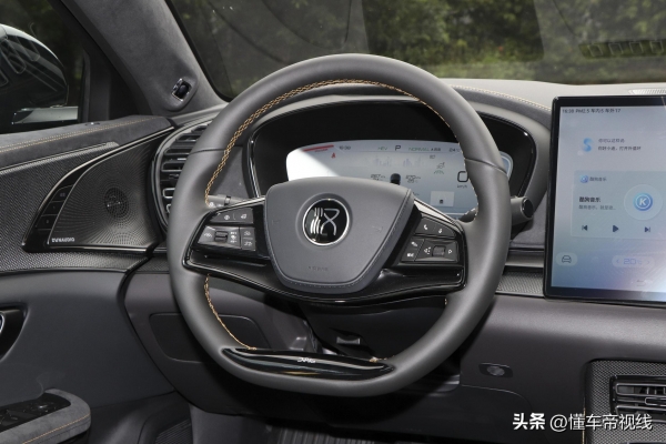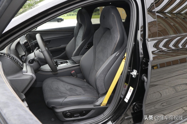 汉DM-p战神版车内则配备了运动套件,并在座椅、门板、副驾面板、中控扶手等位置均采用了黑色类麂皮材质进行包覆,还增加黑色碳纤维材料以及黄色缝线进行点缀。车内使用了一体式运动座椅,并采用了"金甲黄"配色的安全带。