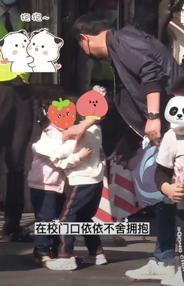 走到门口的时候,小小糖还和同学拥抱告别,女孩子之间的友谊可真是太好嗑啦!大概是抱在一起的时间太久了,唐嫣的父亲急了,开始抓小孙女的手臂,想要强行两人分开。