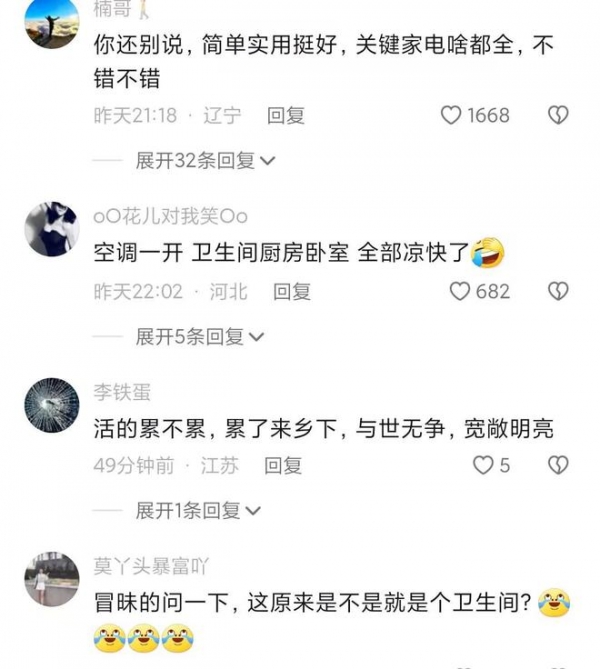 还有网友评论说,比住宾馆强,至少有自己的空间,还可以做饭,不用上公厕排队。