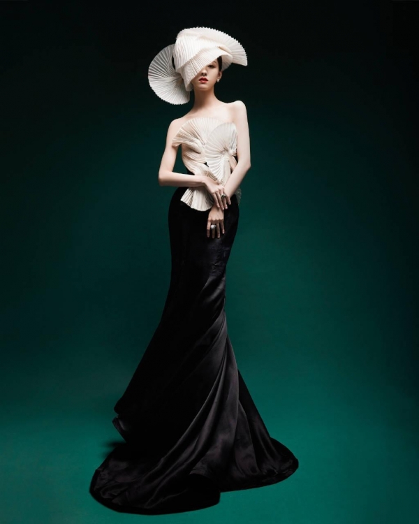 陈都灵本次出席红毯穿的是一身黑白折扇裙,造型优雅漂亮,甚至有种艺术品的感觉。