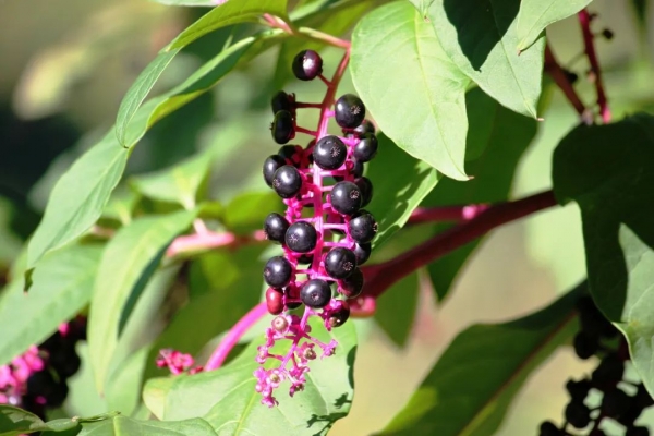 "商陆"又名土人参、野萝卜、山萝卜。民间常称之为大苋菜、红参叶等,容易被误认为"可食用的野菜"。