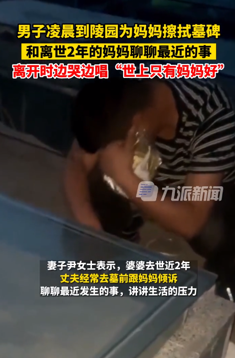 男子凌晨到陵园为妈妈擦墓碑,和离世2年妈妈聊天,唱"世上只有妈妈好",妻子:第一次见他泣不成声