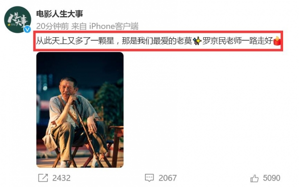 罗京民因病去世!多位影帝发声缅怀,生前露面身形消瘦、显佝偻!
