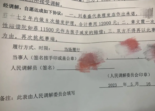 该顾客称:"女童理发店剪掉顾客头发索赔一万多。我是受害者为什么大家还要来喷我,还有人说我是去剪头发的,有人说我故意被剪,有人说我回头就把头发剪短了,都行行好吧,我在此澄清一下、我那天是去染发的,我并不想剪头发,事后经调解宝妈赔偿11500,作为我8次接头发费用,价值1.2万,我自己贴500,每接一次给理发店1500,当天就接回来了,事后宝妈也非常有礼貌的道歉了,店家在价格上也做了让步,而我也只是要接回长发而已,谢谢网友们关心。"