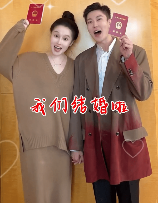 两人相识于2019年,2021年公开恋情,同年5月,小陈成功求婚。今年2月14日情人节的时候,两人正式领证,成为合法夫妻。