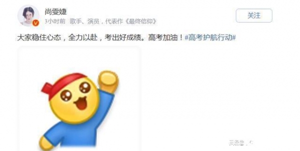 所以每当这个时候,娱乐圈的不少明星,也不会沉默,不管是热心关注表达真心祝愿,还是蹭热度刷存在,都会来祝福考生,为他们加油助威,即使只是一句简单的话,或许对粉丝和网友,也是一种激励吧,虽然他们最近可能都不会上网刷娱乐消息。