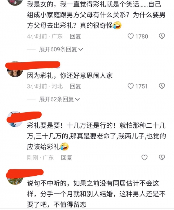 还有网友评论说,因为彩礼分手了,你还好意思闹人家?