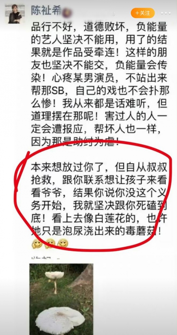 陈祉希跟了潘粤明很多年,她曾怒斥董洁,说潘粤明的爸爸在抢救的时候,想见一眼孙子,结果董洁说自己没这个义务,拒绝儿子去看爷爷。这件事发生之后,陈祉希决定以后和董洁死磕到底,还骂她看起来像白莲花,实际上是毒蘑菇。