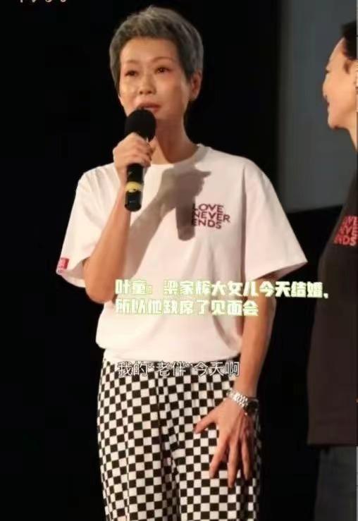 不过,6月10日当天梁家辉却突然缺席新片的宣传活动,令人惊讶的是,叶童在接受采访大方爆料:"我的老伴梁家辉今日之所以缺席,其实是因为今天是他大女儿的婚礼。"台下观众听见后,立马发出一阵欢呼声,还有人大喊"我爱你",以此祝贺梁家辉女儿的大喜之事。