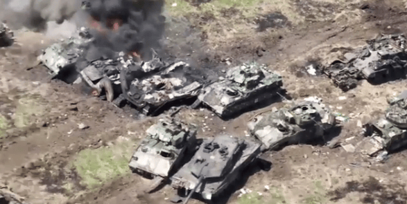 俄罗斯国防部10日公布了在南顿涅茨克方向被摧毁的乌军装甲车辆的画面,其中就包括德国"豹"2坦克和美制"布莱德利"战车。