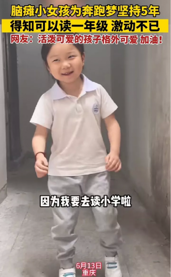 原来,这位可爱的小女孩,是6岁脑瘫患儿豆豆,坚持康复治疗5年,如今她终于可以去上学了。