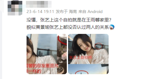 截图中提到,张艺上曾在黄景瑜和王雨馨的婚房里拍照,还真有网友发现了蛛丝马迹...