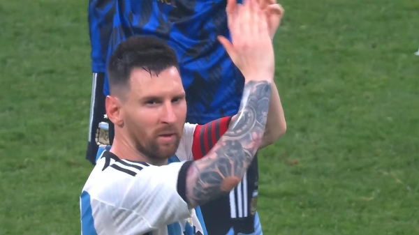 赛后梅西谢场,向四周鼓掌致谢,感谢球迷支持,这次来到北京,梅西感受到了疯狂的、热情的中国球迷们。工体现场的球迷们也给予了巨大的欢呼声,支持梅西。
