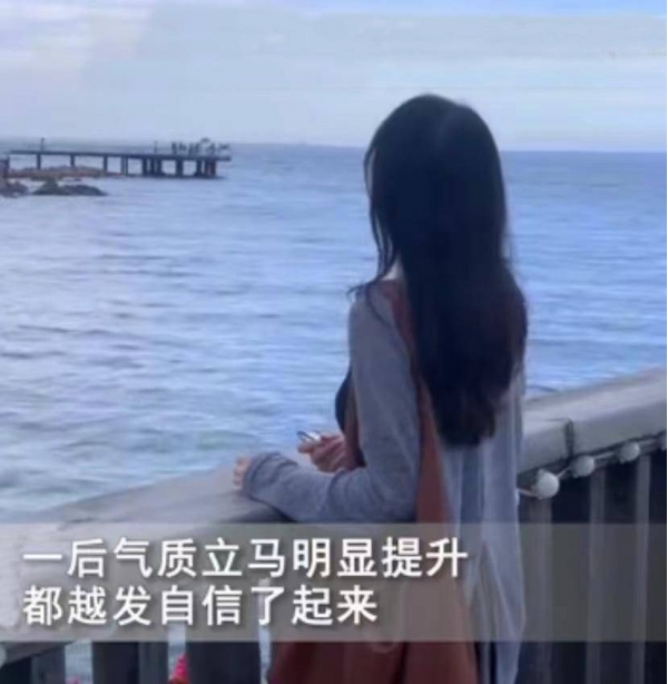 女生瘦了好多,穿衣打扮更加有型,气质随之明显提升,就连走路都昂首挺胸,自信满满。