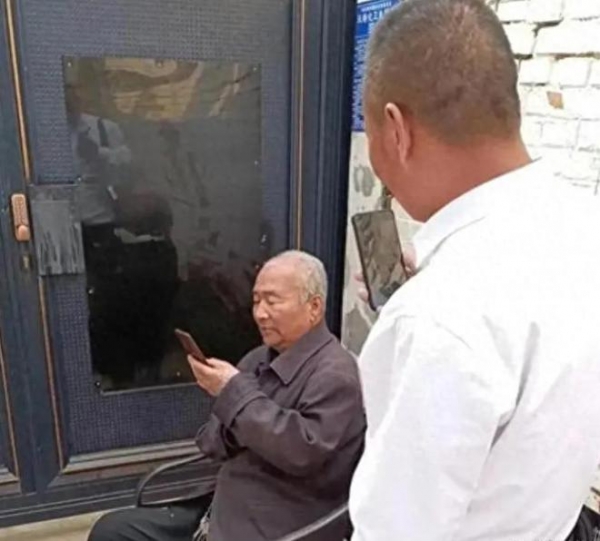 为了实现自己的借钱愿望,老汉直接从边上搬来了一把椅子坐下来玩手机,随后还掏出了一支香烟,悠哉悠哉的抽了起来。