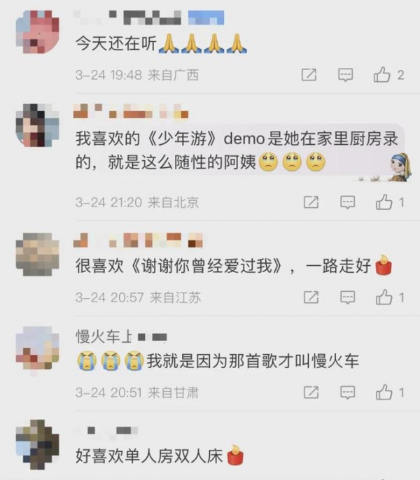 3月24日,当滚石唱片官方发布了这位60岁的才女离世的消息时,整个华语乐坛为之震惊和哀悼。在获得家人同意后,他们才公开传达这个沉痛的消息。消息一出,无数歌迷和好友纷纷献上最后的祝福。