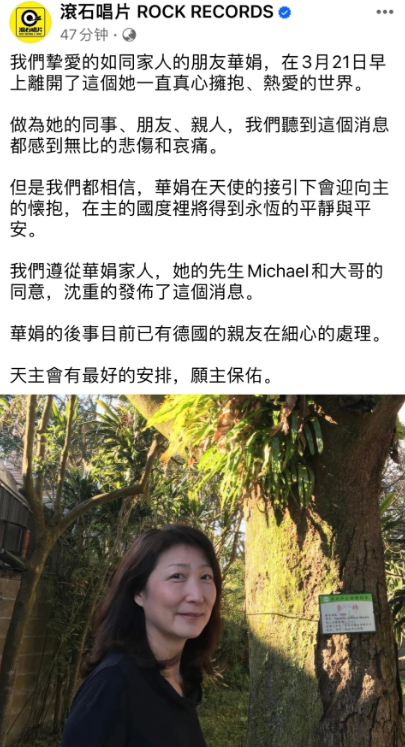 华娟生前最后一次在公开场合露面,已是很多年前的事了。然而,她的离世却令无数人震惊和哀悼。张清芳、张惠妹、万芳、郑怡等同行好友,纷纷发文哀悼并致敬这位音乐前辈。