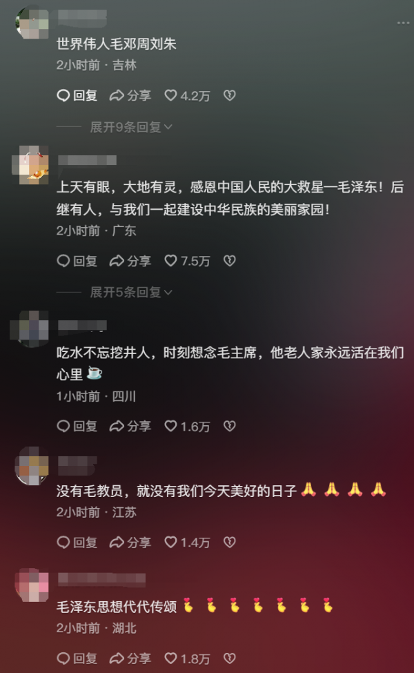 网友也表达了吃水不忘挖井人,时刻想念毛主席。