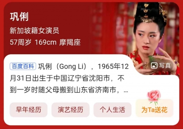 不是中国国籍,自然不能享受国家级的称号,巩俐便从"国家一级演员"中除名,现是"新加坡演员"。