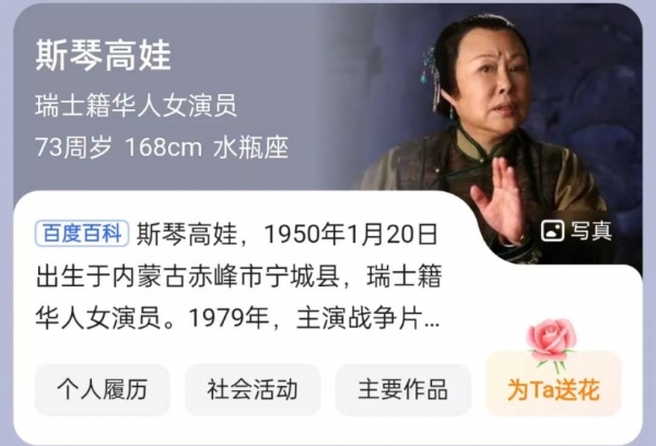 另一位被剔除"国家一级演员"称号的女演员是斯琴高娃,其独特的名字端庄的长相,令人印象深刻。