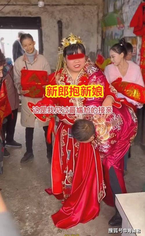 农村一场婚礼上,新郎抱新娘当场"翻车",他使出吃奶的劲也抱不动新娘,逗得全场的宾客哈哈大笑。
