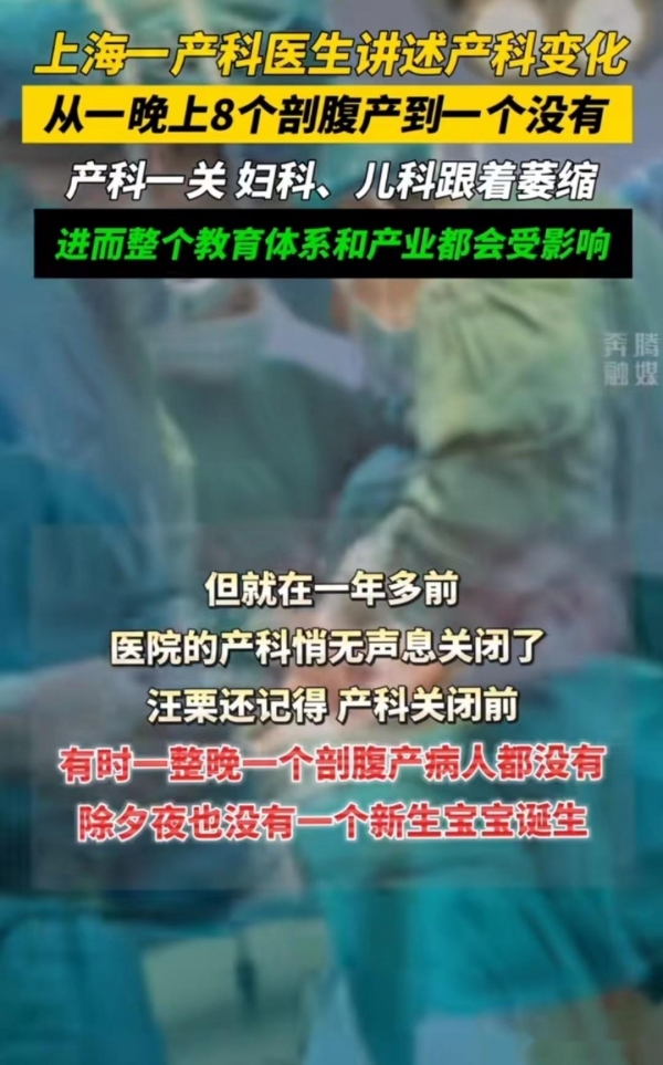 没人生娃了?上海一医生称:产科关闭已不是个例,从90年代一晚上8个剖腹产到1个没有!