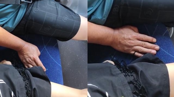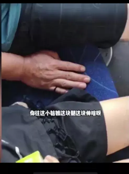 从网友上传的视频可以清晰的看到,小女孩的腿已经快挪到座位最边上了,旁边那只魔爪依然没有打算放过她,继续伸到她的腿下面!