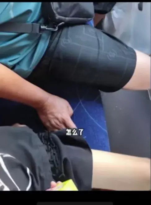 这一猥琐行为刚好被一名女乘客发现了,要说这名女乘客那绝对是好样的,面对这种不法行为,勇敢的站出来,进行大声的呵斥。女乘客:"你那手干啥呢?"
