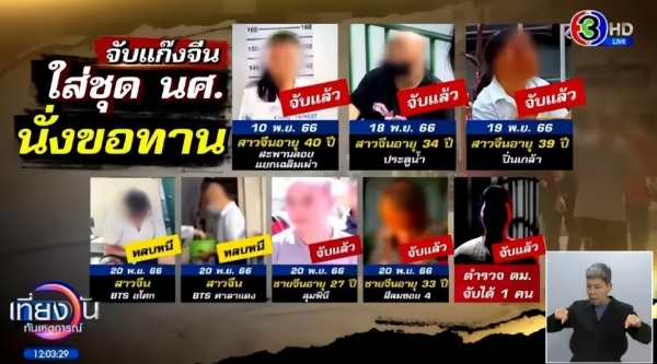 时间线显示,这些中国人今年6月持旅游签入境,一个人申请学生签延留,部分人称来旅游后钱花完才乞讨。他们每天可以乞得1万多泰铢,一直坚持这种"职业"直至被捕。泰北及其他地区也发现中国乞丐,问题较为严重。