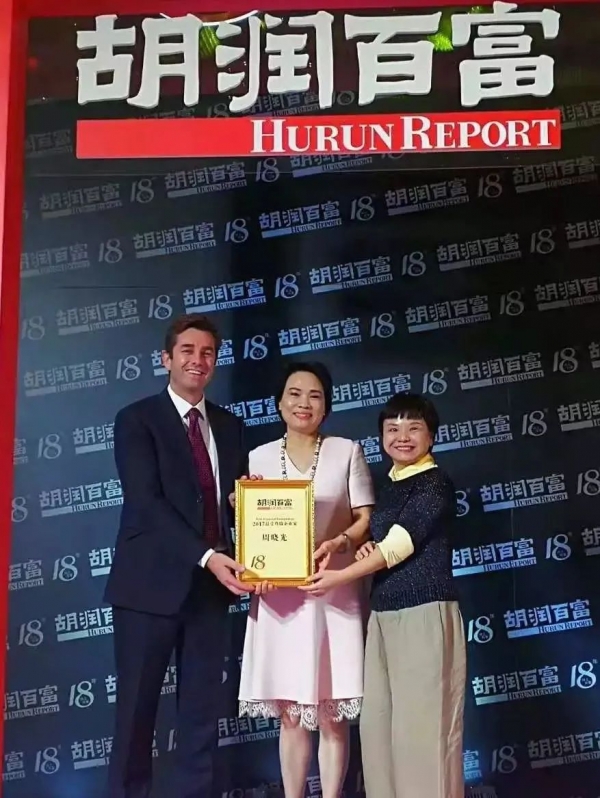 2017年,周晓光登上胡润富豪榜 胡润(左)周晓光(中)